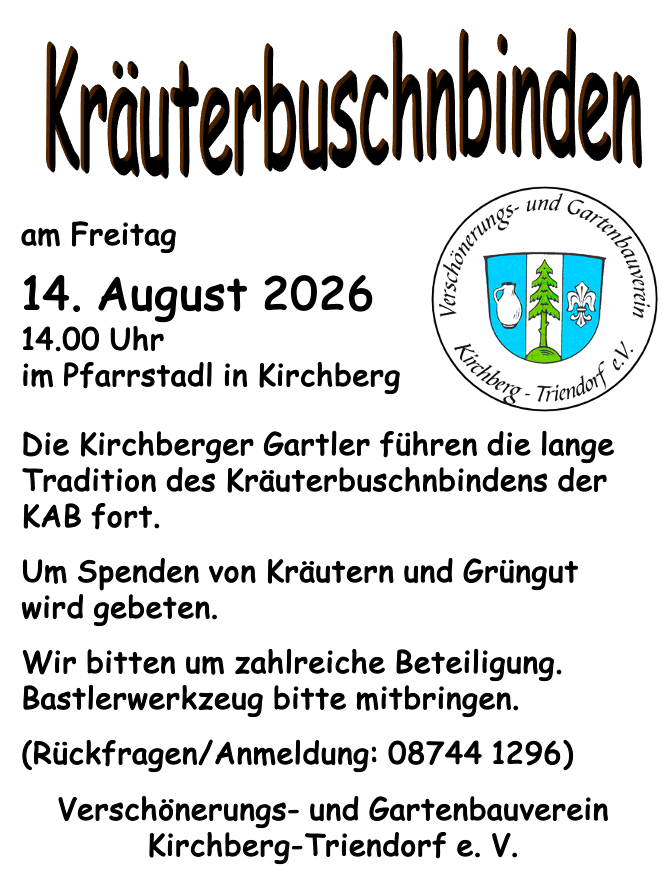 14:00 Uhr Kräuterbuschnbinden im Kirchberger Pfarrstadl