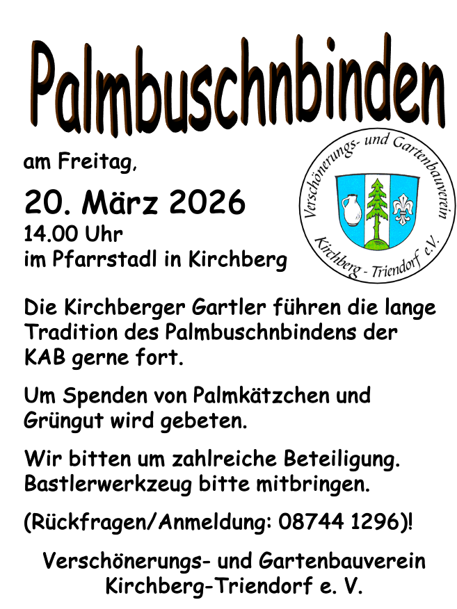 14:00 Uhr Palmbuschnbinden im Kirchberger Pfarrstadl