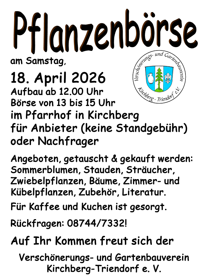 13:00 Uhr Pflanzenbörse im Kirchberger Pfarrhof