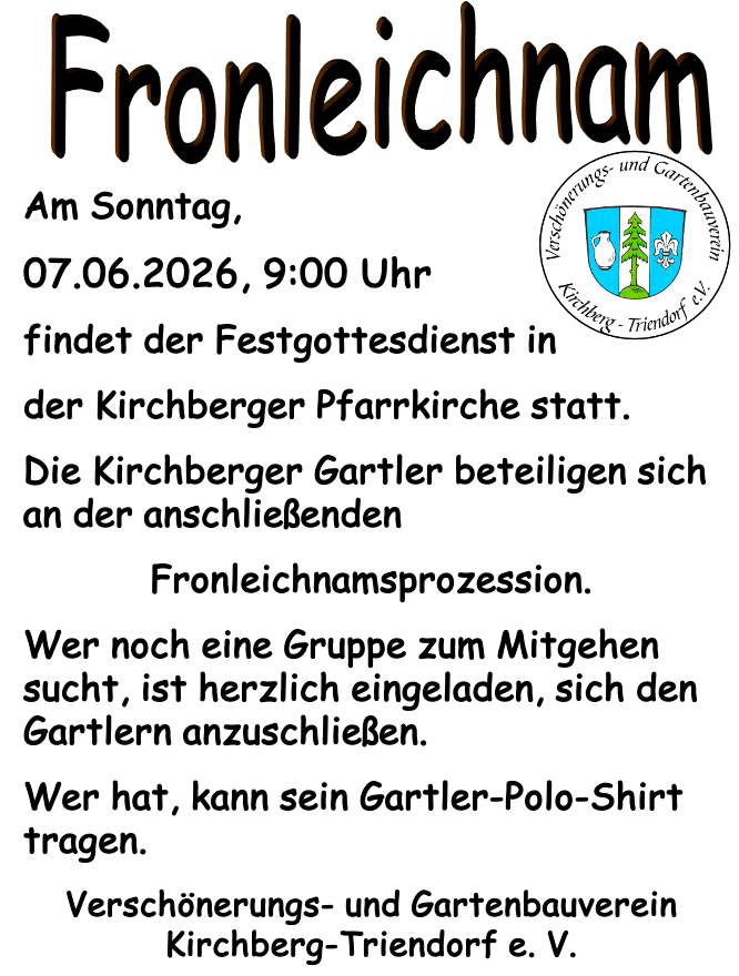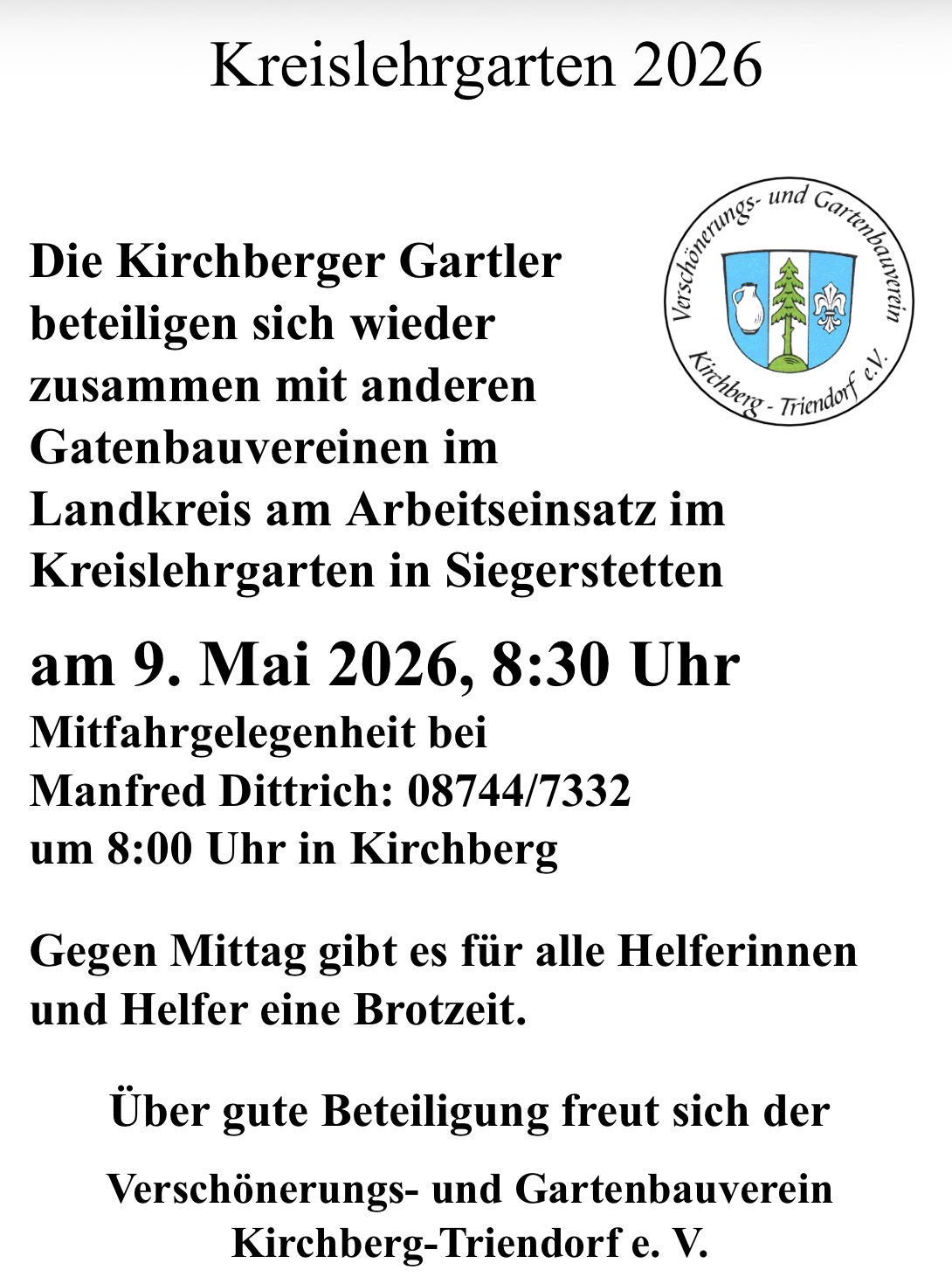 Details, Änderungen und Aktualisierungen auf der Gartler-Homepage, im Schaukasten beim Kirchberger Wirtshaus, per WhatsApp und E-Mail-Verteiler und/oder in der Tagespresse